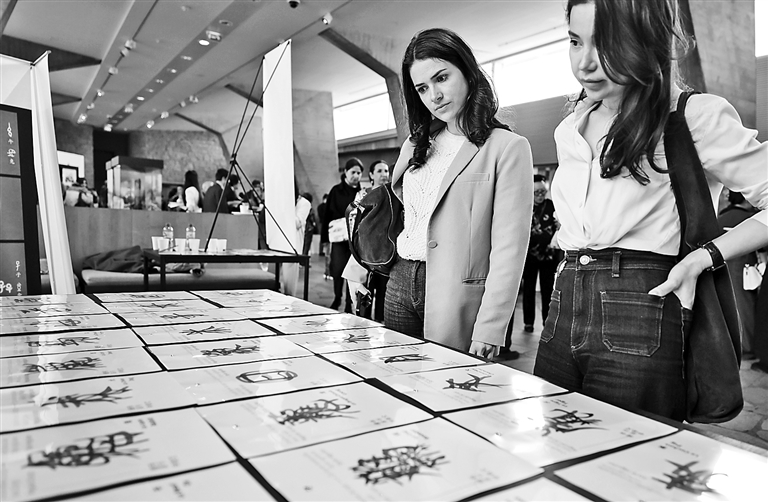 4月16日,在位于法国巴黎的联合国教科文组织总部,嘉宾在以“中文:点亮多彩梦想”为主题的联合国中文日庆祝活动上参观。新华社发